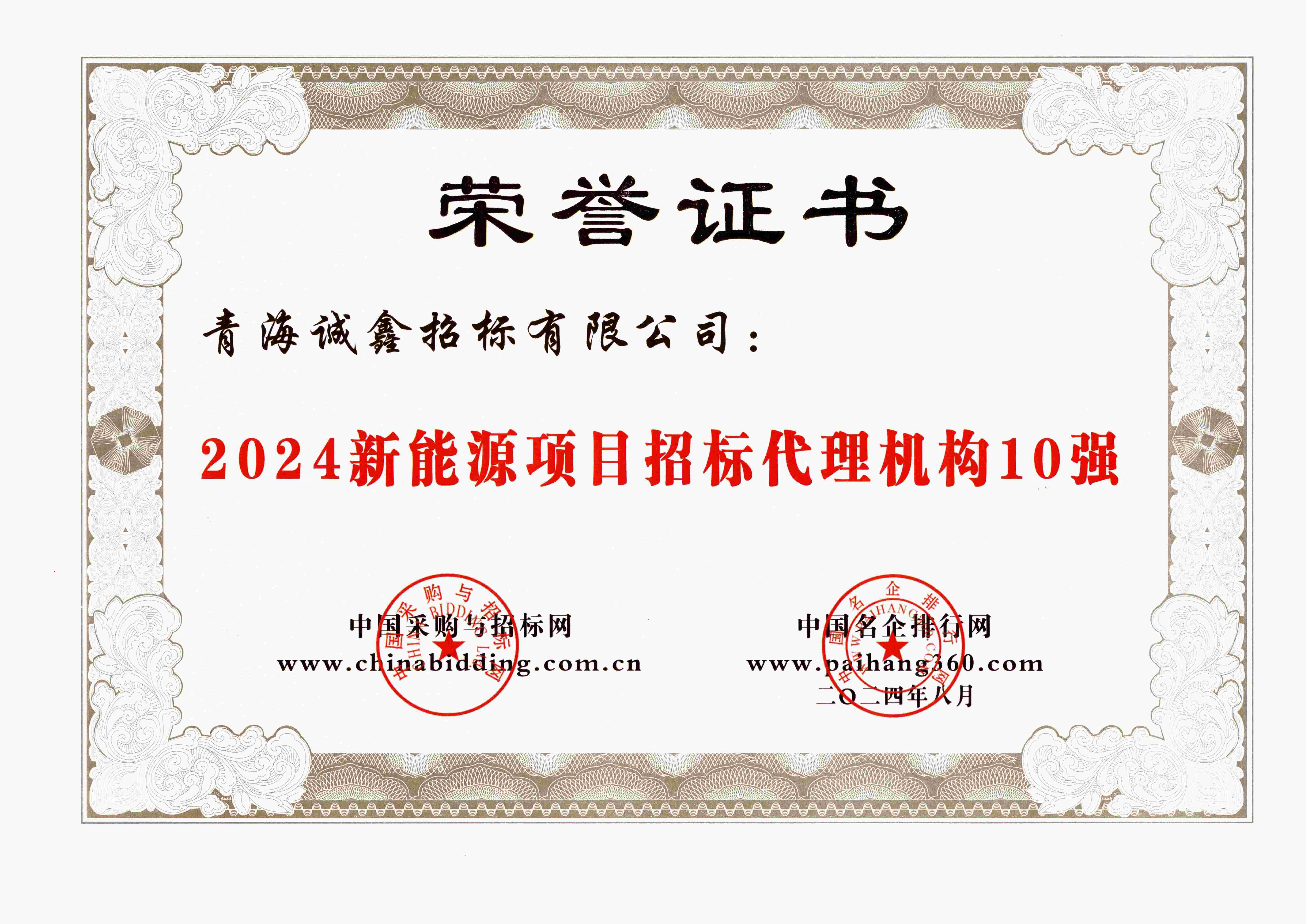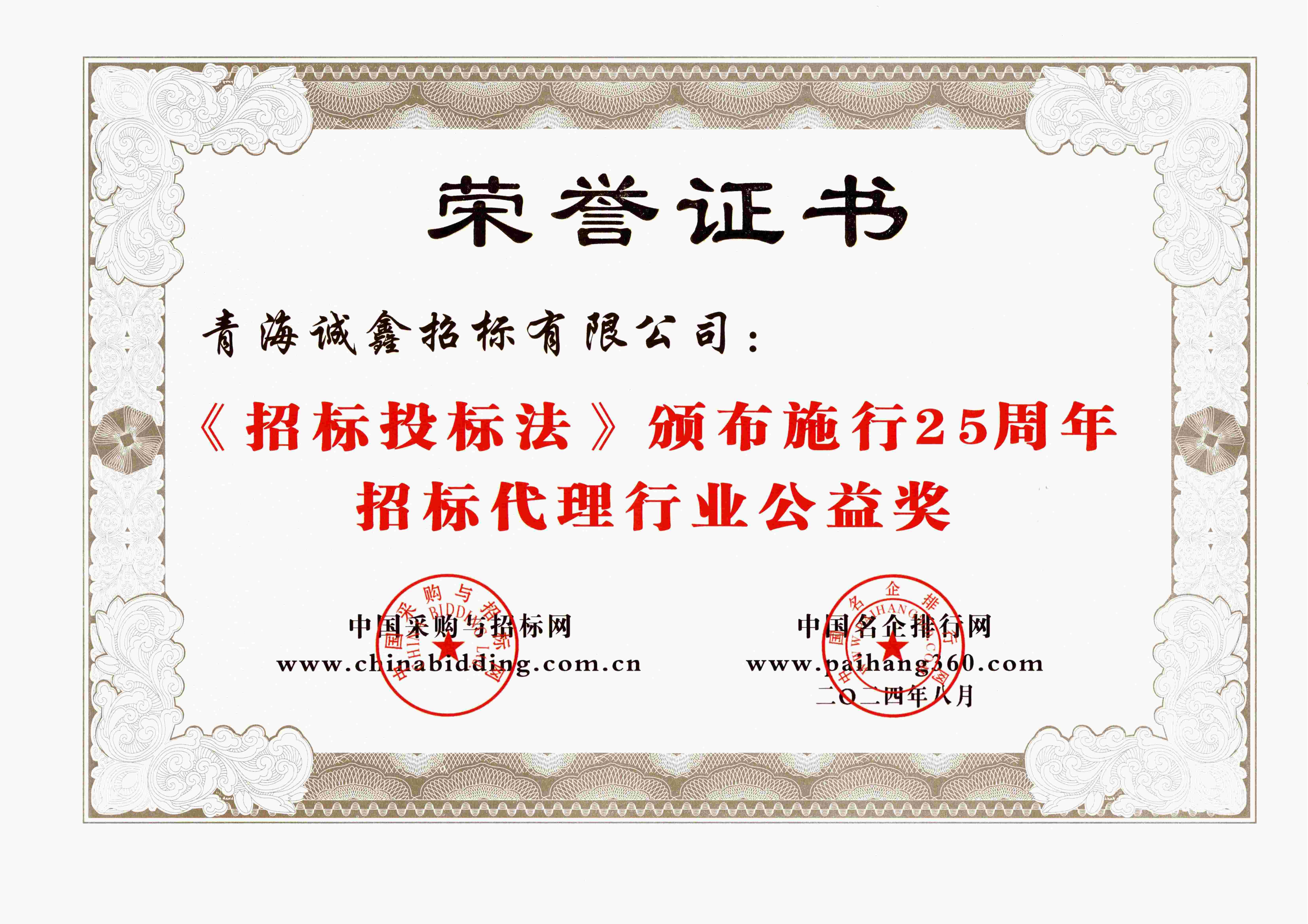 公司連續(xù)四年榮獲“招標(biāo)代理行業(yè)綜合實力百強”、連續(xù)六年榮獲“青海省公共資源交易代理機(jī)構(gòu)場內(nèi)信用評價A級單位”,同時獲得“2024全過程工程咨詢行業(yè)綜合實力百強”“2023-2024年度二十佳政府采購代理機(jī)構(gòu)綜合類”“2023-2024年度百強政府采購代理機(jī)構(gòu)”“2024新能源項目招標(biāo)代理機(jī)構(gòu)10強”;青海省招標(biāo)投標(biāo)協(xié)會頒發(fā)的“行業(yè)信用評價5A”“先進(jìn)基層黨組織”“青年文明號”等多項榮譽稱號。